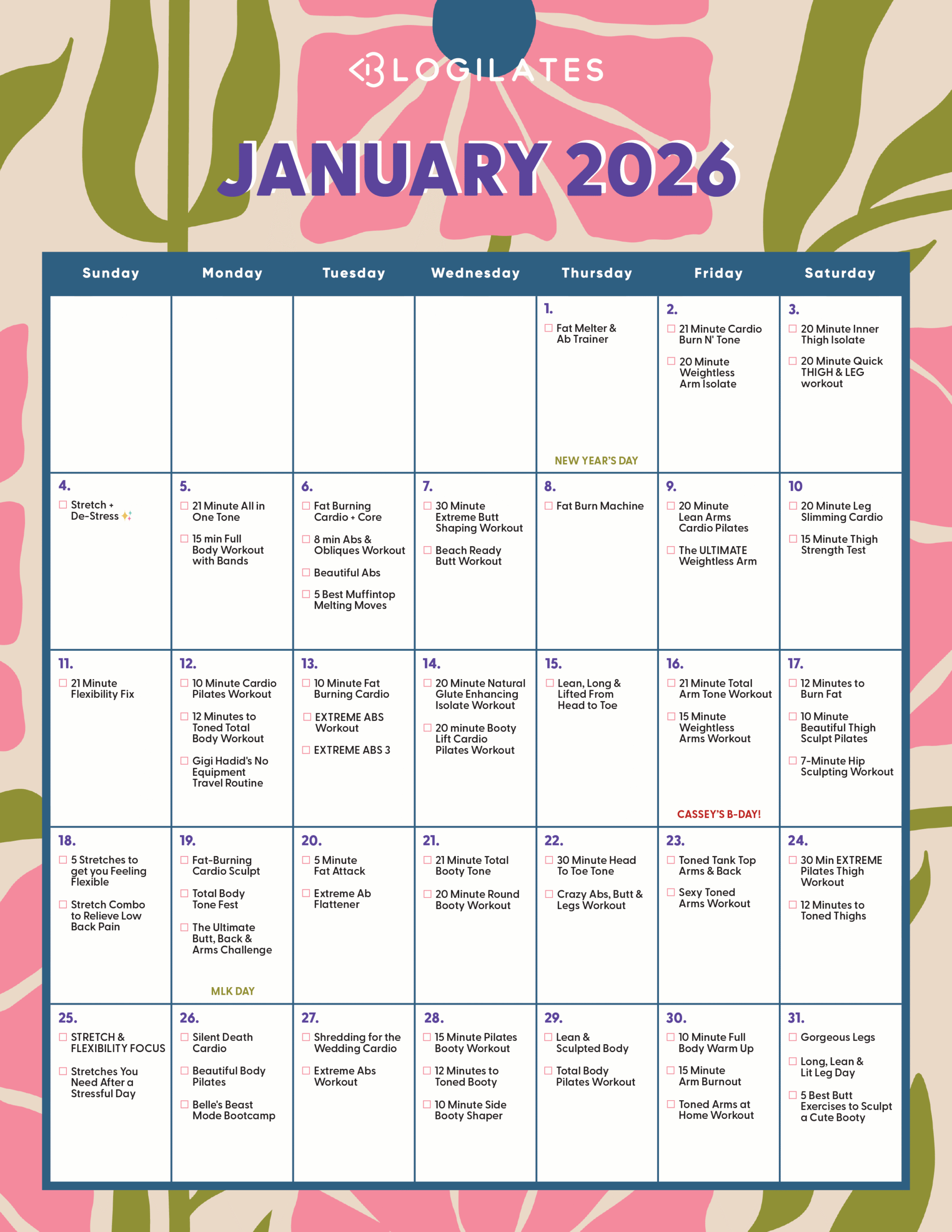 Here’s Your Blogilates January 2026 Workout Calendar!